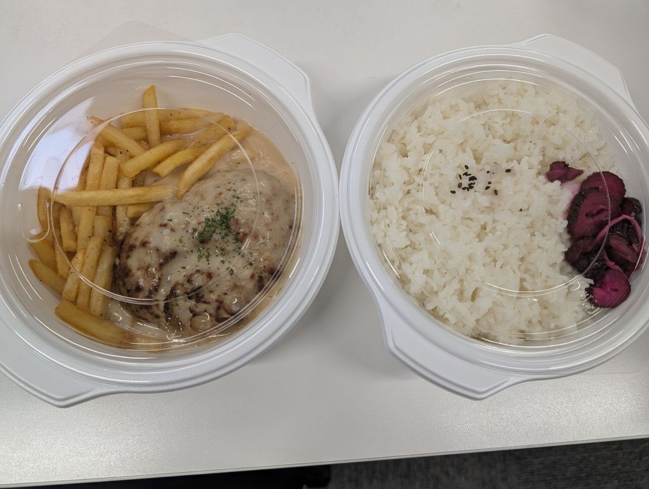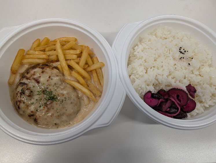 お店ではハンバーグもご飯も超デカ盛りを楽しめますが、Uber eatsではそこそこの大盛です。